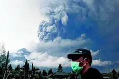 எரிமலைக்கு அருகில் உள்ள பகுதிகளில் வசிக்கும் கிராமவாசிகள் பாதுகாப்பான இடங்களுக்கு வெளியேறினர்.