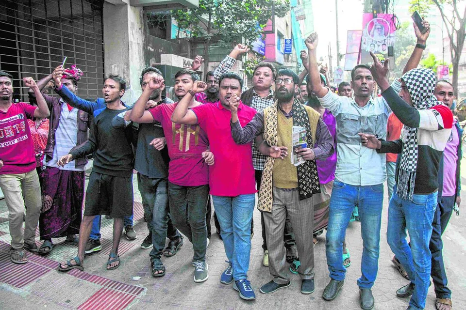 பங்ளாதேஷில் நடப்பு அரசாங்கத்திற்கும் எதிர்க்கட்சியான பங்ளாதேஷ் தேசியவாதக் கட்சிக்கும் இடையே மோதல் வலுத்துள்ளது. சென்ற செவ்வாய்க்கிழமையன்று எதிர்க்கட்சியின் அலுவலகத்தைப் பாதுகாப்புப் படையினர் தாக்கினர். வன்முறையைத் தூண்டியதாக நேற்று முன்தினம் இரண்டு முக்கிய எதிர்க்கட்சித் தலைவர்கள் கைது செய்யப்பட்டனர். இந்நிலையில், நேற்று டாக்காவில் ஒன்று திரண்ட பல்லாயிரக்கணக்கான எதிர்க்கட்சி ஆதரவாளர்கள் பிரதமர் ஷேக் ஹசினாவின் ஆட்சிக்கு எதிராக ஆர்ப்பாட்டத்தில் ஈடுபட்டனர். நாடாளுமன்றத்தைக் கலைத்துவிட்டு மீண்டும் தேர்தல் நடத்தவேண்டும் என்றும் அவர்கள் வலியுறுத்தினர்.