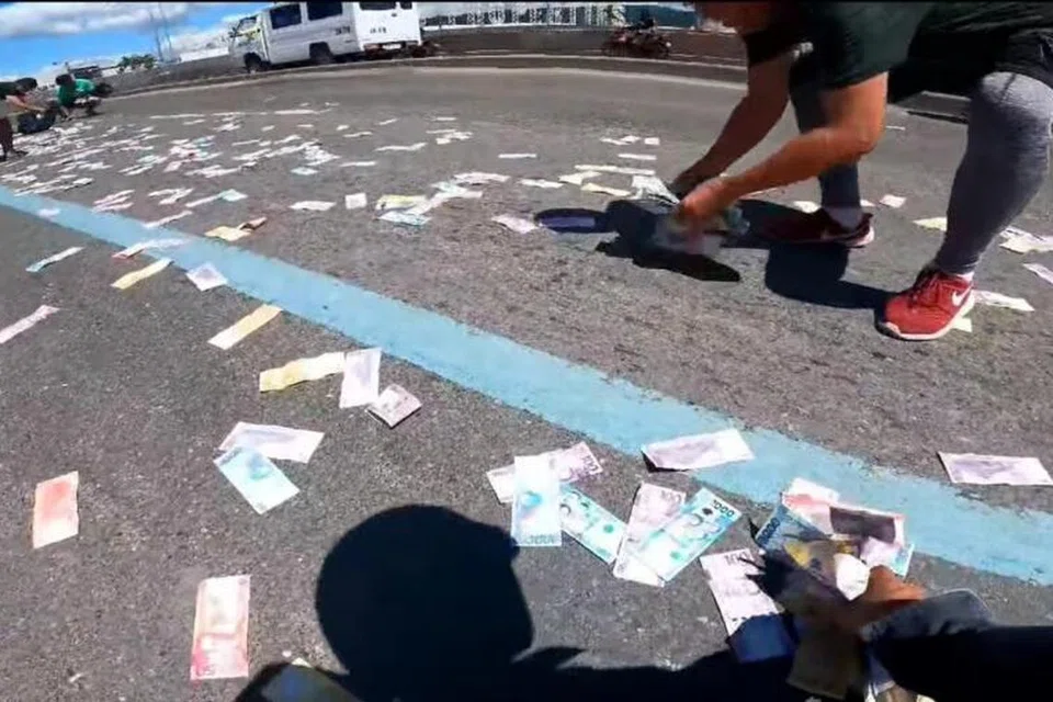 பிலிப்பீன்சின் கடலோர நெடுஞ்சாலை ஒன்றில் செவ்வாய்க்கிழமை பண மழை பெய்தது.