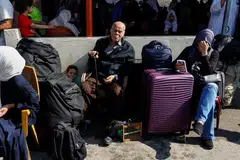 அத்தியாவசியப் பொருள்களை ஏந்திய டிரக் வாகனங்கள், செவ்வாய்க்கிழமை எகிப்தில் உள்ள ரஃபா எல்லையை நோக்கிச் சென்றன.