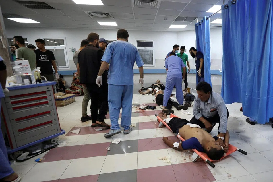 காஸா சிட்டியில் உள்ள மருத்துவமனையில் செவ்வாய்க்கிழமை ஏற்பட்ட வெடிப்பில் நூற்றுக்கணக்கானோர் கொல்லப்பட்டனர். இச்சம்பவத்துக்கு இஸ்ரேலிய, பாலஸ்தீன அதிகாரிகள் ஒருவர்மீது ஒருவர் பழி சுமத்தி வருகின்றனர். மேற்குக் கரையிலும் மத்திய கிழக்கிலும் ஆர்ப்பாட்டங்கள் வெடித்துள்ளன.