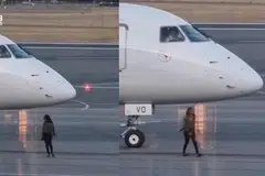 ஒரு விமானத்தின் கீழ் அந்தக் கார் நிற்பதாக அதிகாரிகள் தெரிவித்தனர்.