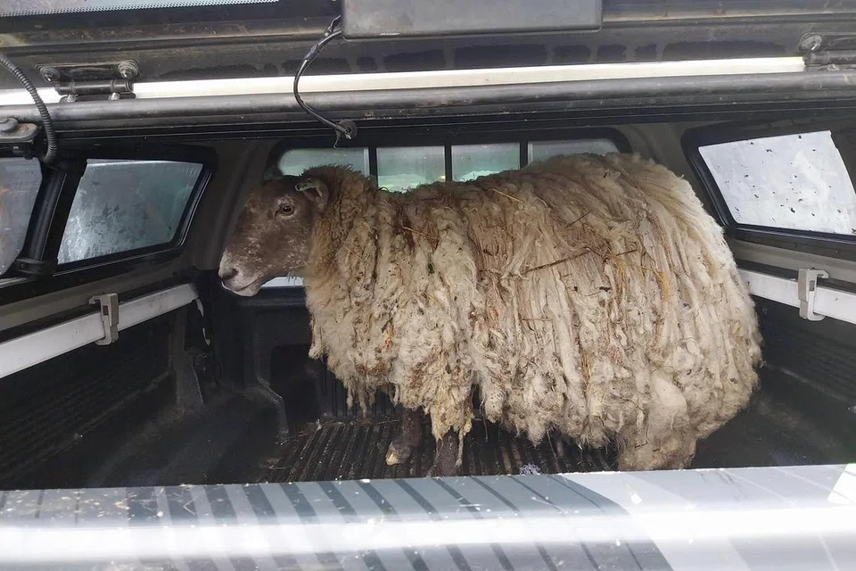ஃபியோனா எனப் பெரியடப்பட்டுள்ள அந்த ஆட்டின் உரோமம் முழுவதையும் மீட்புப் பணியாளர்கள் வெட்டினர்.
