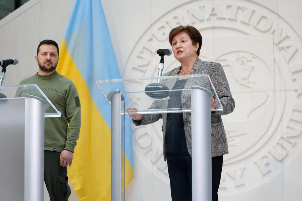 வாஷிங்டனில் உள்ள ஐஎம்எஃப் தலைமையகத்தில் ஒரு மணி நேரத்திற்கு மேல் நீடித்த சந்திப்பில் ஒரு நாட்டைத் தவிர உக்ரேனுக்கு ஐஎம்எஃப் நிர்வாக சபை ஒருமனதாக ஆதரவு அளிப்பதாக ஸெலன்ஸ்கியிடம் திருவாட்டி ஜார்ஜிவா தெரிவித்தார். அந்த நாடு ரஷ்யா என்பது தெளிவாகத் தெரிந்தது.