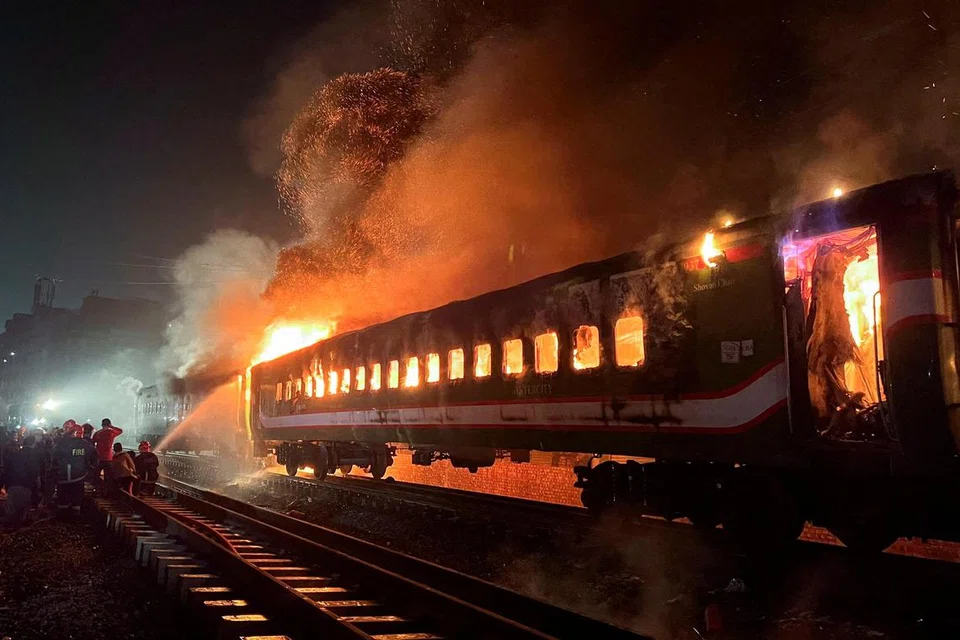 தலைநகர் டாக்காவைச் சேர்ந்த அந்த ‘பினாபோல்’ விரைவு ரயிலில் பற்றிய தீ நான்கு ரயில் பெட்டிகளுக்குப் பரவியது.