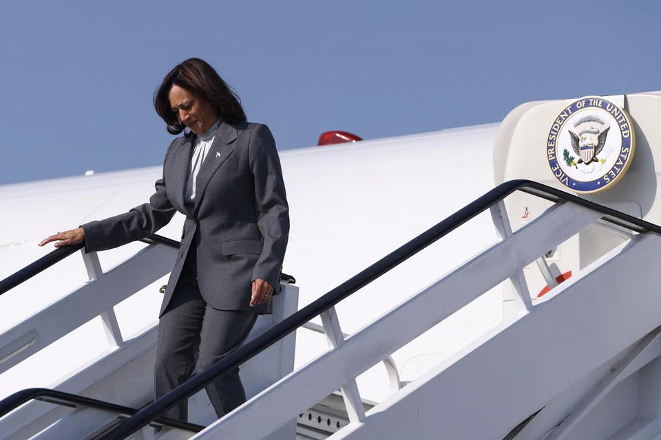 அட்லான்டாவிலிருந்து வந்துகொண்டிருந்த விமானம் டுல்ஸ் அனைத்துலக விமான நிலையத்துக்குத் திருப்பிவிடப்பட்டதாகத் துணை அதிபர் ஹாரிசின் செய்தித்தொடர்பாளர் கிர்ஸ்டன் எலன் அறிக்கை வெளியிட்டார்.