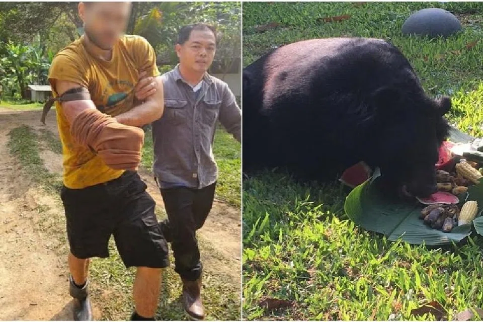 சியாங்மாய்: தாய்லாந்தின் சியாங்மாய் நகரில் கரடியிடமிருந்து தப்பிக்க, சுவிஸ் ஆடவர் ஒருவர் தமது கையையே வெட்டிக்கொண்டார்.