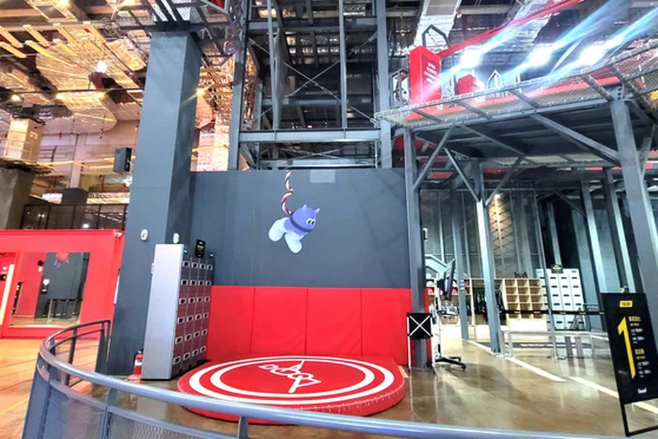 கடைத்தொகுதியில் உள்ள விளையாட்டு நிலையத்தில் அந்த மூதாட்டி 8 மீட்டர் உயரத்திலிருந்து குதித்ததாகத் தெரிவிக்கப்பட்டது.