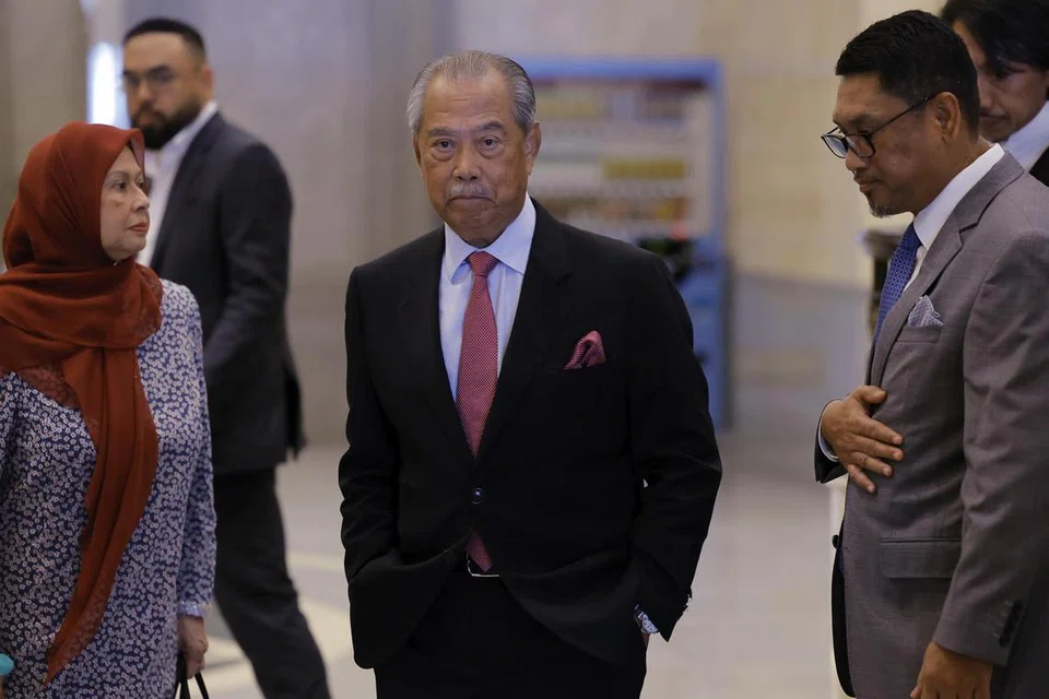 முன்னாள் மலேசியப் பிரதமரும் பெர்சத்து கட்சியின் தலைவருமான முகைதீன் யாசின் (நடுவில்). - படம்: பெர்னாமா
