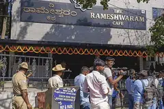 கலையரங்கக் கட்டடத்துக்கு அருகில் நிறுத்திவைக்கப்பட்டிருந்த வாகனங்களை மோப்ப நாய்களைக் கொண்டு காவல்துறை அதிகாரிகள் சோதனையிட்டனர்.