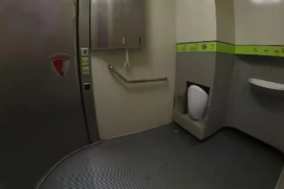 காணொளியில் கழிவறைக் கதவு தானே மூடிக்கொண்டதும் கழிவுத் தொட்டியும் சுவருக்குள் மடங்கிக்கொள்கிறது. தரையெங்கும் தண்ணீர் பீய்ச்சி அடிக்கப்படுகிறது.