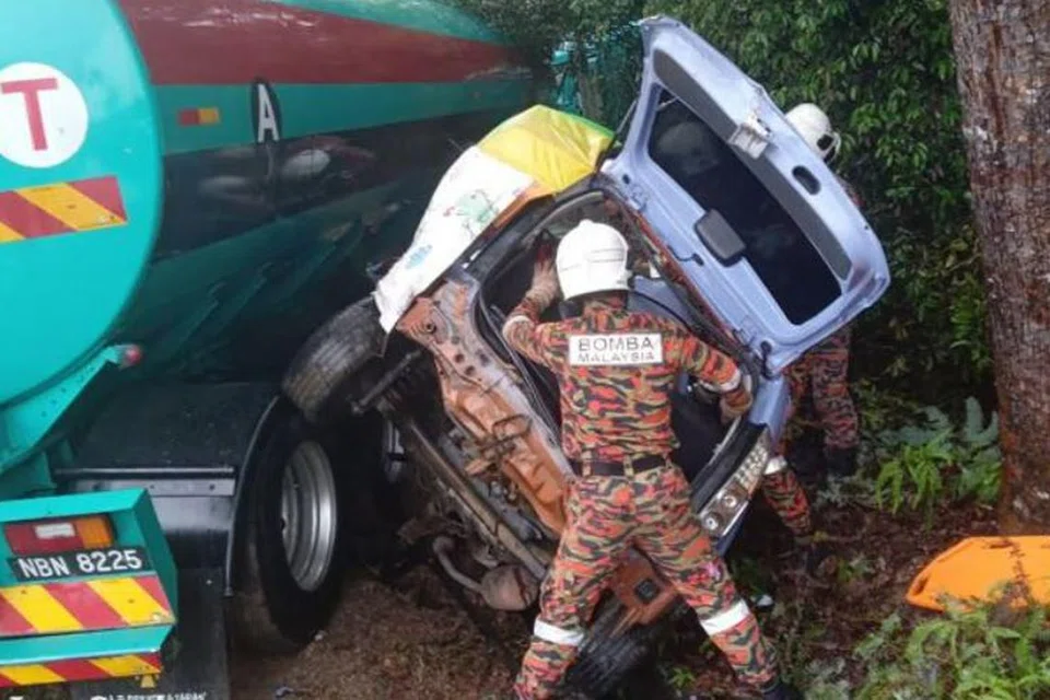 காருடன் டேங்கர் லாரி மோதிக்கொண்ட விபத்து குறித்துத் தங்களுக்கு பிற்பகல் 1.38 மணிக்குத் தகவல் கிடைத்ததாக பெனாவார் தீயணைப்பு, மீட்புப் படையின் செயல்பாட்டுத் தளபதி அஸ்லான் மாட் சானி தெரிவித்தார்.
