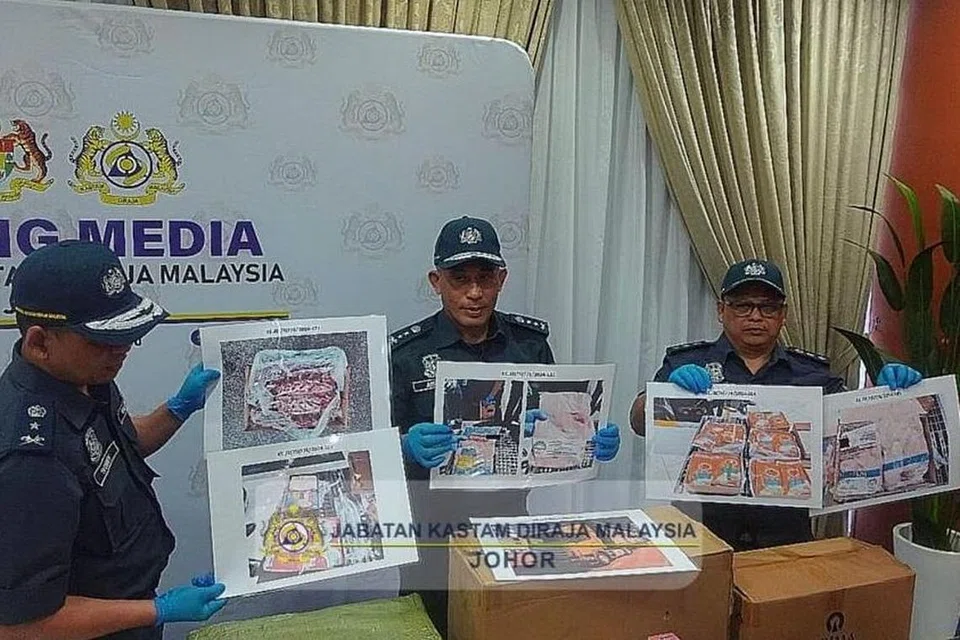 மே மாதம் 21ஆம் தேதியன்று சிங்கப்பூரிலிருந்து வந்த ஐந்து லாரிகளிலிருந்து அந்த இறைச்சி வகைகள் பறிமுதல் செய்யப்பட்டதாக ஜோகூர் சுங்கத் துறை இயக்குநரான அமினுல் இஸ்மீர் முகம்மது சொஹாய்மி தெரிவித்தார்.