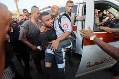 அல்-அக்ஸா மார்டைர்ஸ் மருத்துவமனையில் முகத்தில் கடுமையாகக் காயமடைந்து ரத்த வெள்ளத்தில் காணப்பட்ட சிறுவன், இஸ்ரேலின் அந்தத் தாக்குதலில் தன் தந்தை உயிரிழந்ததாகக் கூறினான்.