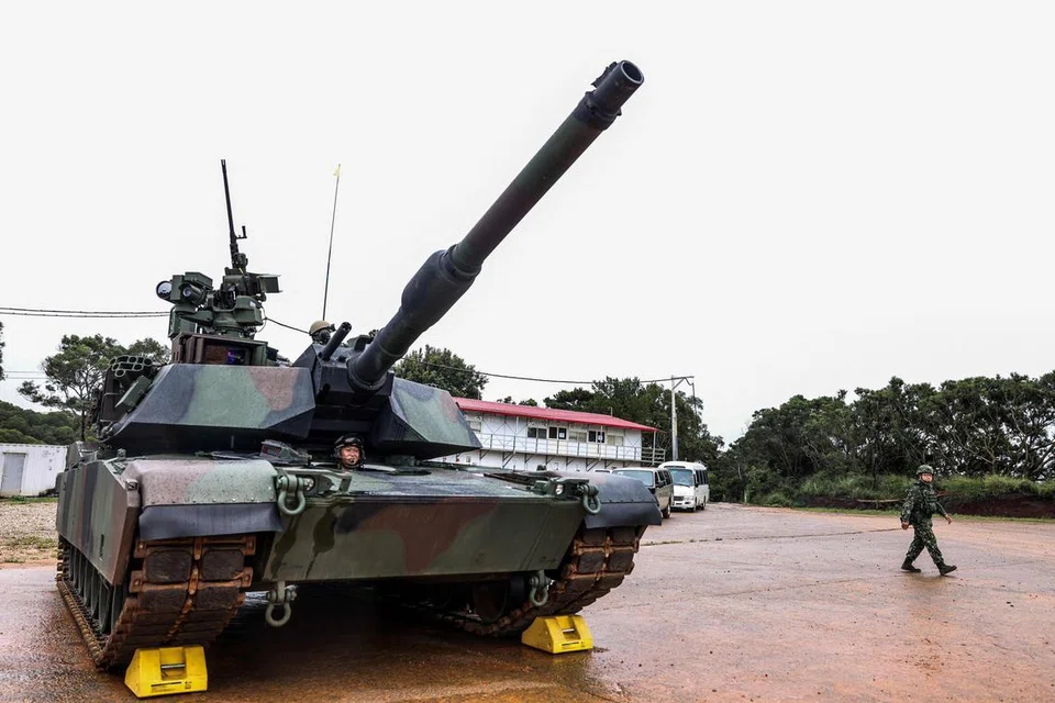 தைவானின் வடமேற்கில், தைவான் நீரிணைக்கு எதிரே அமைந்துள்ள சின்சு மாவட்டத்தில் உள்ள ஒரு சேறு நிறைந்த ராணுவப் பயிற்சி மைதானத்தில் நான்கு அப்ராம்ஸ் கவச வாகனங்கள் நகர்த்தப்படுவது காட்டப்பட்டது.