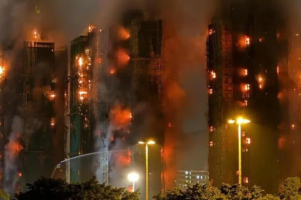 1983ஆம் ஆண்டில் கட்டப்பட்ட அந்த வீடமைப்புப் பேட்டையில் உள்ள எட்டு 32 மாடிகள் கொண்ட மக்கள் குடியிருப்புக் கட்டடங்களில் சீரமைப்புப் பணிகள் நடந்துவருகின்றன. அங்கு பயன்படுத்தப்பட்ட மூங்கில் சாரக்கட்டுகளிலும் பச்சைநிற மறைப்புகளிலும் தீ மூண்டதாக சந்தேகிக்கப்படுகிறது.