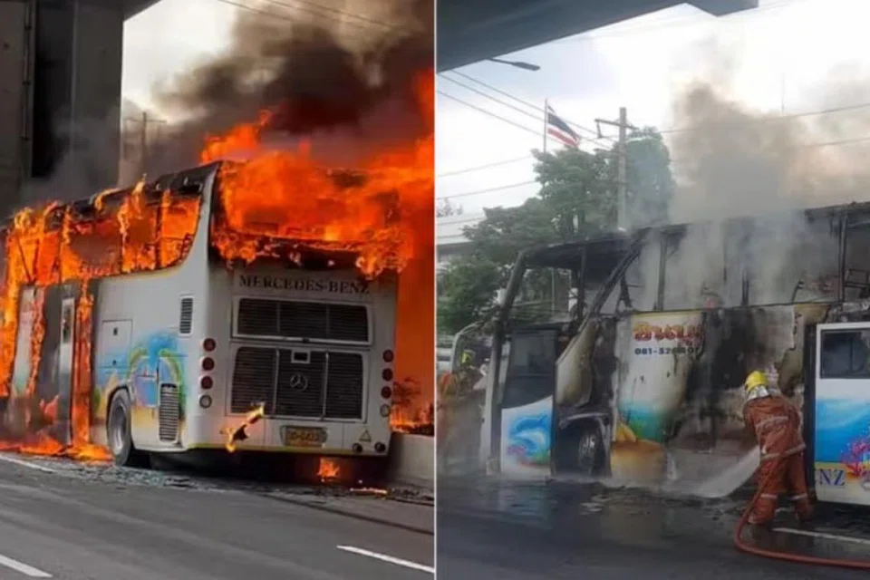 தாய்லாந்தில் பள்ளி மாணவர்கள் சுற்றுலா சென்ற பேருந்து தீப்பிடித்து எரிந்ததில் 25 பேர் உயிரிழந்ததாக அஞ்சப்படுகிறது.