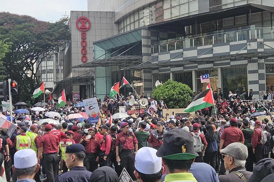 எதிர்த்தரப்பு பெரிக்காத்தான் நேஷனல் (PN) ஏற்பாடு செய்த அந்தப் பேரணியில் ஏறத்தாழ 4,000 பேர் பங்கேற்றனர். அவர்களில் பெரும்பாலானோர் பாலஸ்தீன ஆதரவைப் பிரதிபலிக்கும் வகையில் கறுப்பு, வெள்ளை உடை அணிந்திருந்தனர்.