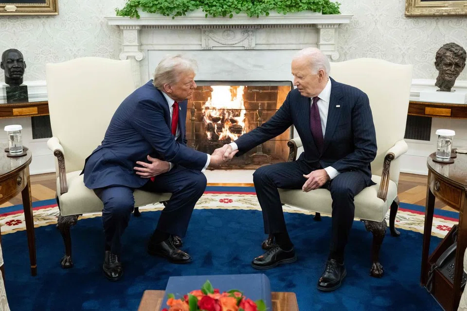 அடுத்த அதிபராகத் தேர்வு செய்யப்பட்டுள்ள டிரம்ப்பும் திரு பைடனும் ஓவல் அலுவலகத்தில் சந்தித்துப் பேசினர். ஆட்சி மாற்றம் சுமுகமாக இருப்பதை இருவரும் மறுவுறுதிப்படுத்தினர்.