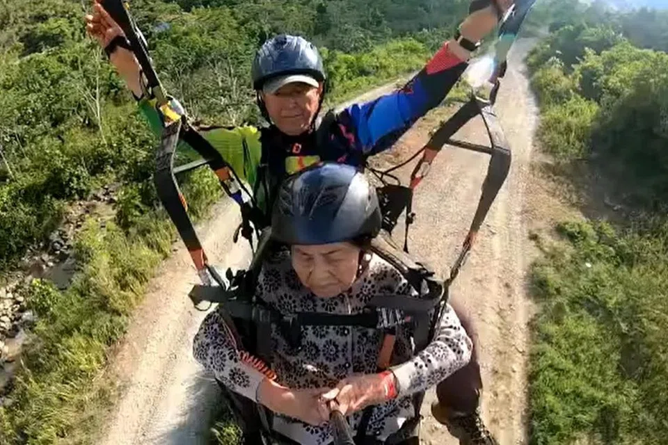 திருவாட்டி தொங், ஐம்பது வயது மதிக்கத்தக்க தன் மகளை ஊக்கப்படுத்துவதற்காகத் தான் முதலில் வான்குடையூர்தியில் செல்ல முன்வந்தார்.