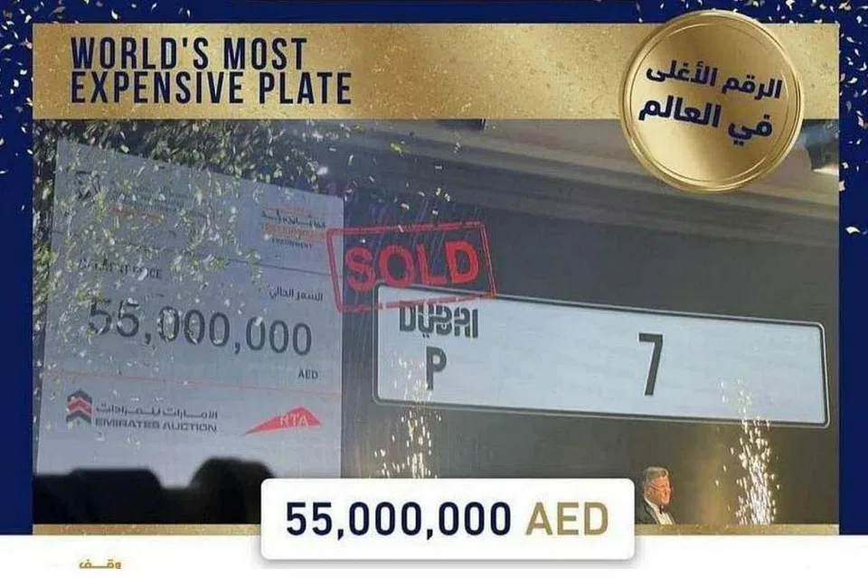 துபாயில் கார் பதிவெண் ஒன்றைக் கிட்டத்தட்ட 20 மில்லியன் வெள்ளிக்கு வாங்கியுள்ளார் ஐக்கிய அரபுச் சிற்றரசுகளைச் சேர்ந்த செல்வந்தர்.