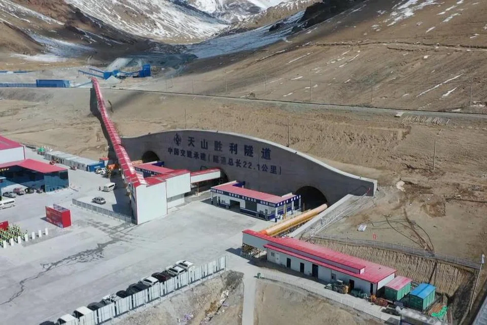 ஜின்ஜியாங் உய்குர் தன்னாட்சிப் பகுதியில் உள்ள பனி மூடிய மலைகளைக் குடைந்து கட்டப்பட்டுள்ள இந்த விரைவு சுரங்கச்சாலை அடித்தளக் கட்டுமானத்தில் ஒரு மைல்கல்.