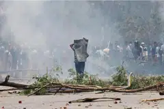 அவர்களைக் கலைக்க காவல்துறையினர் ரப்பர் தோட்டாக்களையும் கண்ணீர் புகையையும் பயன்படுத்தியதில் 20 பேர் காயமடைந்துள்ளனர்.