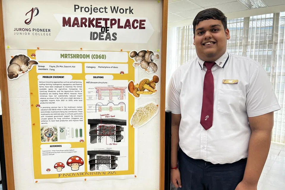 இதனை அடைய, விரிவடைந்துவரும் எம்ஆர்டி கட்டமைப்பில் வேளாண்மை செய்யலாம் என்கின்றனர் ஜூரோங் பைனியர் தொடக்கக் கல்லூரியில் பயிலும் சஸ்வின், 18, மற்றும் குழுவினர்.