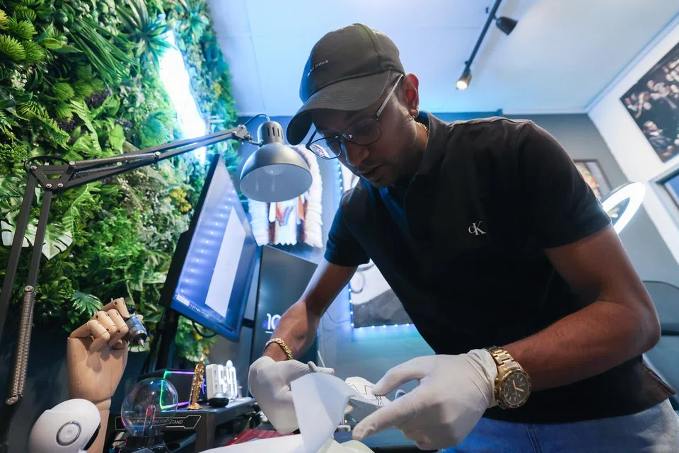 பகலில் அலுவலக வேலையைப் பார்த்துவிட்டு மாலை நேரத்தில் கையுறைகளை அணிந்தவாறு பச்சை குத்துதலுக்குத் தேவையான கருவிகளைக் கையில் எடுத்துக்கொண்டு சிறிய ஸ்டூடியோவில் தமது தொழிலைப் பார்க்கத் தொடங்கிவிடுவார் 30 வயதாகும் ஜதீஸ்வரன் நாயுடு.