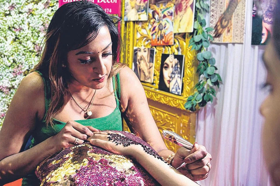 அந்தக் கலையில் பயிற்சிபெற்று அழகிய வடிவங்களை வரைபவர்கள் இன்று பலர் உள்ளனர். இதில் வாடிக்கையாளர்களை ஈர்க்கும் கலைஞர்களில் ஒருவர், 'ஹென்னா ஃபெடிஷ்' எனும் பெயரில் மருதாணி இடும் சேவையை வழங்கி வரும் சரஸ்வதி. இவர் சமூக ஊடகம் மூலம் தமது மருதாணி சேவையைப் பிரபலமாக்கியவர். கடந்த 15 ஆண்டுகளாக தீபாவளி சந்தையில் கடை நடத்திப் பலரது கைகளுக்கு மருதாணி இட்டு, அழகுபடுத்தி வரும் சரஸ்வதி இவ்வாண்டும் தமது கைவண்ணத்தைக் காட்டத் தயாராகிவிட்டார்.