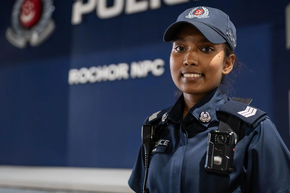 சிங்கப்பூர் காவல்துறையின் தரை நடவடிக்கைப் படை அதிகாரி நிவேதா விஜயகுமார். - படம்: சிங்கப்பூர் காவல் துறை