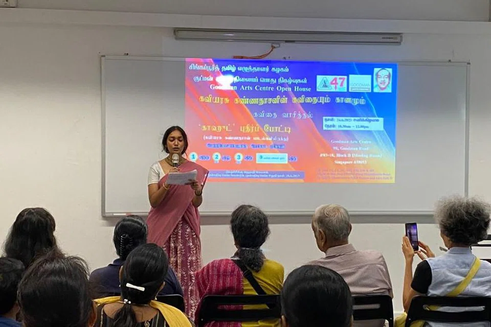 சிங்கப்பூரில் உள்ள பல தமிழ்மொழி அமைப்புகள் நடத்தும் நிகழ்ச்சிகளில் கலந்துகொண்டு அங்குள்ள மற்ற தமிழர்களுடன் உரையாடுவதில் நான் ஆர்வம் கொண்டேன்.