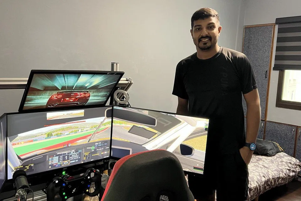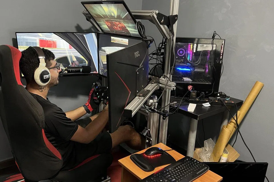 முழுநேரமாக ‘சிம் ரேசிங்’ எனப்படும் பாவனைப் பயிற்சி கார் பந்தயத்தில் ஈடுபட்டு வரும் சுரின். - படம்: அனுஷா செல்வமணி