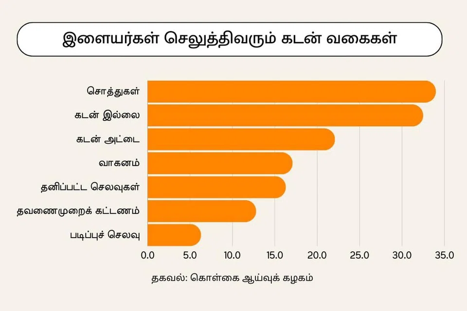 இதற்கிடையே, தற்போது தாங்கள் என்னென்ன கடன்களுக்குக் கட்டணம் செலுத்தி வருகின்றனர் என்றும் ஆய்வில் கேட்கப்பட்டது.
